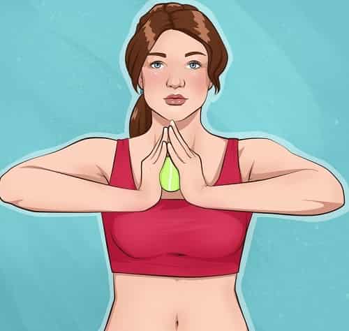 - Возьмите в руки теннисный мяч и поместите его в ладонях на уровне грyди.