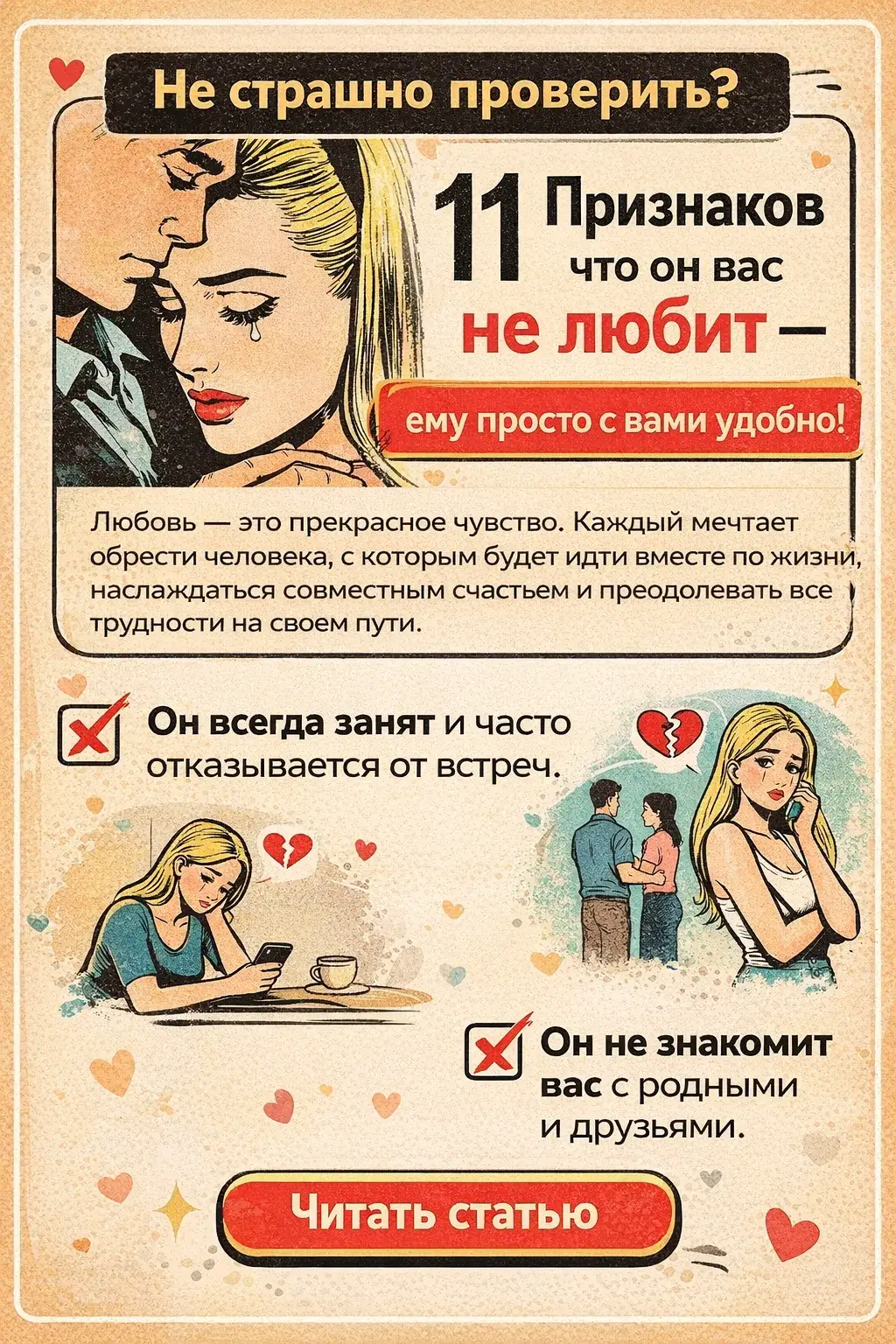 11 Признаков что он вас не любит — ему просто с вами удобно !Не страшно проверить?