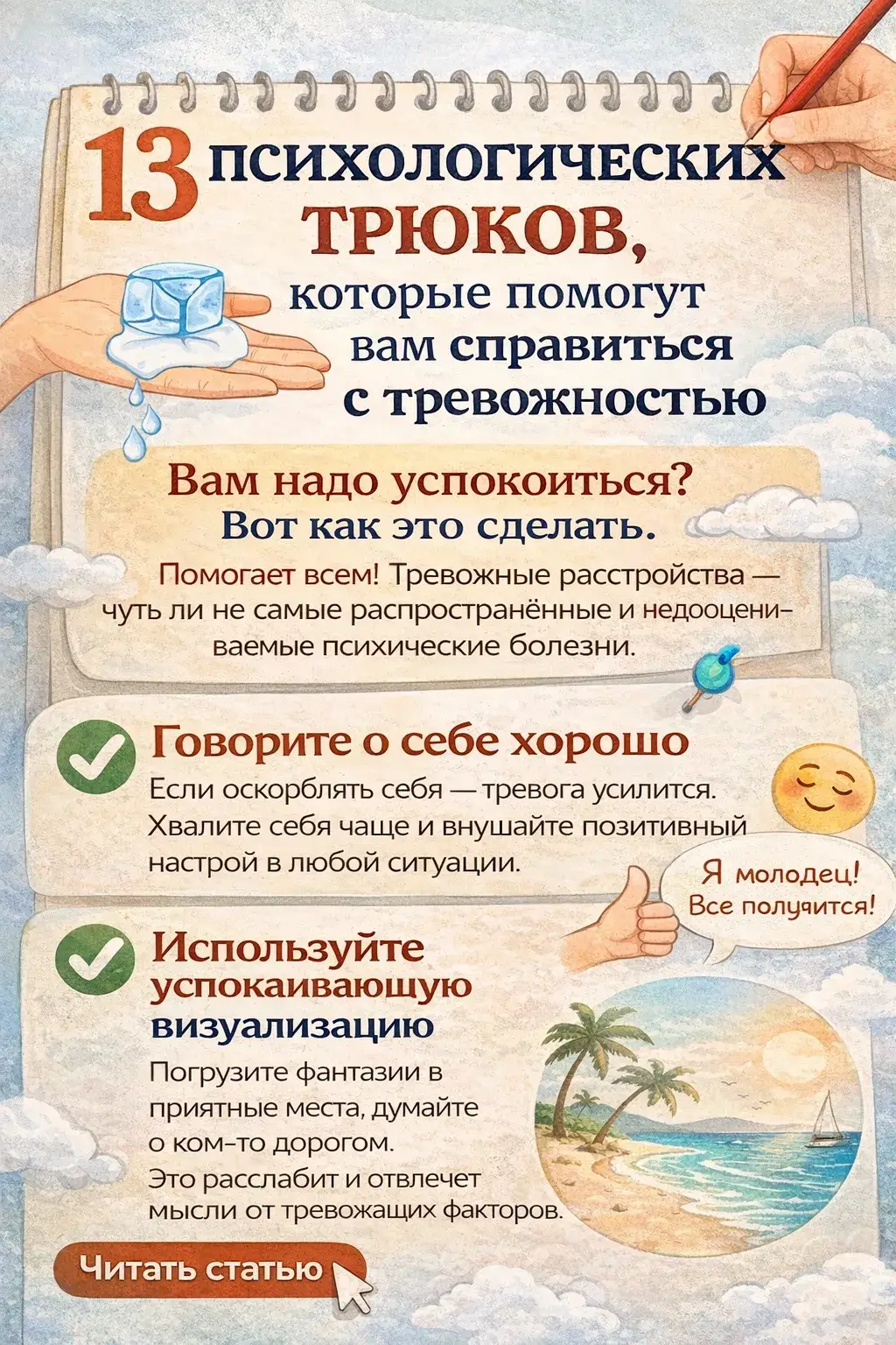 13 психологических трюков, которые помогут вам справиться с тревожностью. Вам надо успокоиться? Вот как это сделать