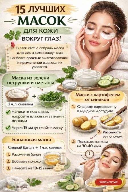 С возрастом за ней стоит следить еще более тщательно, чтобы избежать морщин.В этой статье собраны маски для век и кожи вокруг глаз наиболее простые в изготовлении и применении в домашних условиях.