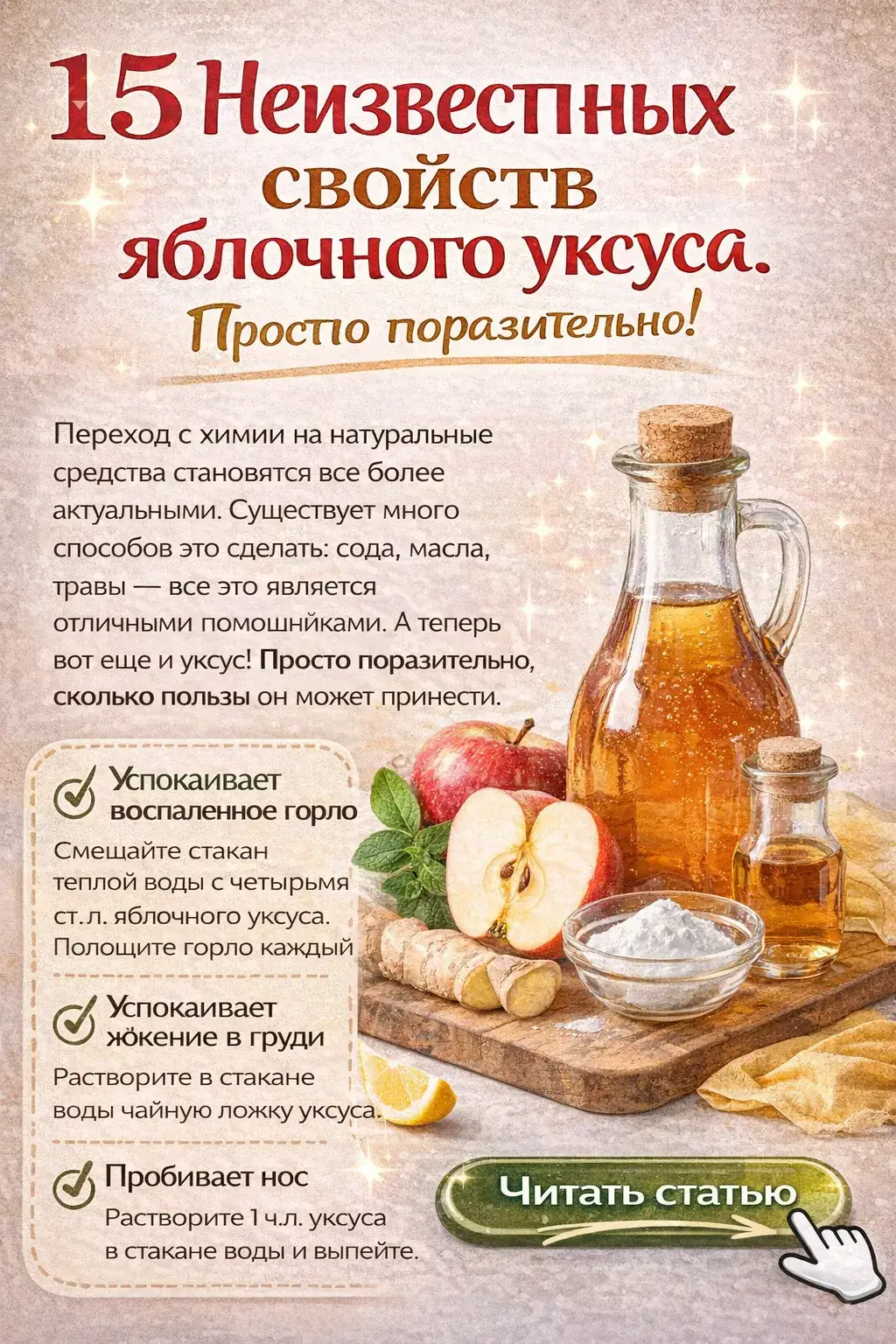 15 Неизвестных свойств яблочного уксуса: