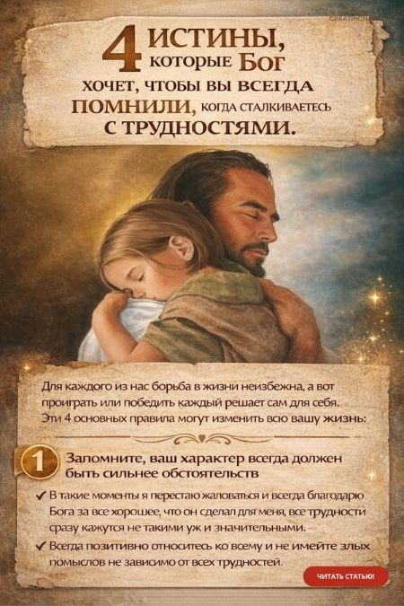 4 истины, которые Бог хочет, чтобы вы всегда помнили: Для каждого из нас борьба в жизни неизбежна, а вот проиграть или победить каждый решает сам для себя. Эти 4 основных правила могут изменить всю вашу жизнь: