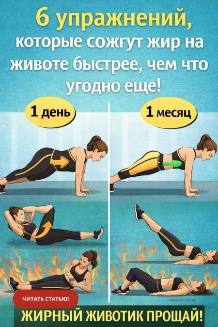 6 упражнений, которые сожгут жир на животе быстрее, чем что угодно еще!Начинайте сегодня