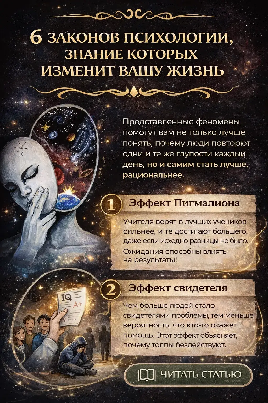 6 законов психологии, знание которых изменит вашу жизнь. Представленные феномены помогут вам не только лучше понять, почему люди повторяют одни и те же глупости каждый день, но и самим стать лучше, рациональнее.