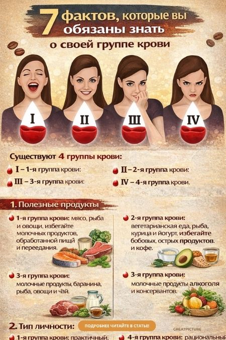 7 фактов которые вы обязаны знать о своей группе крови. Запомнить легко, использовать — важно. Сохраните себе эту памятку!