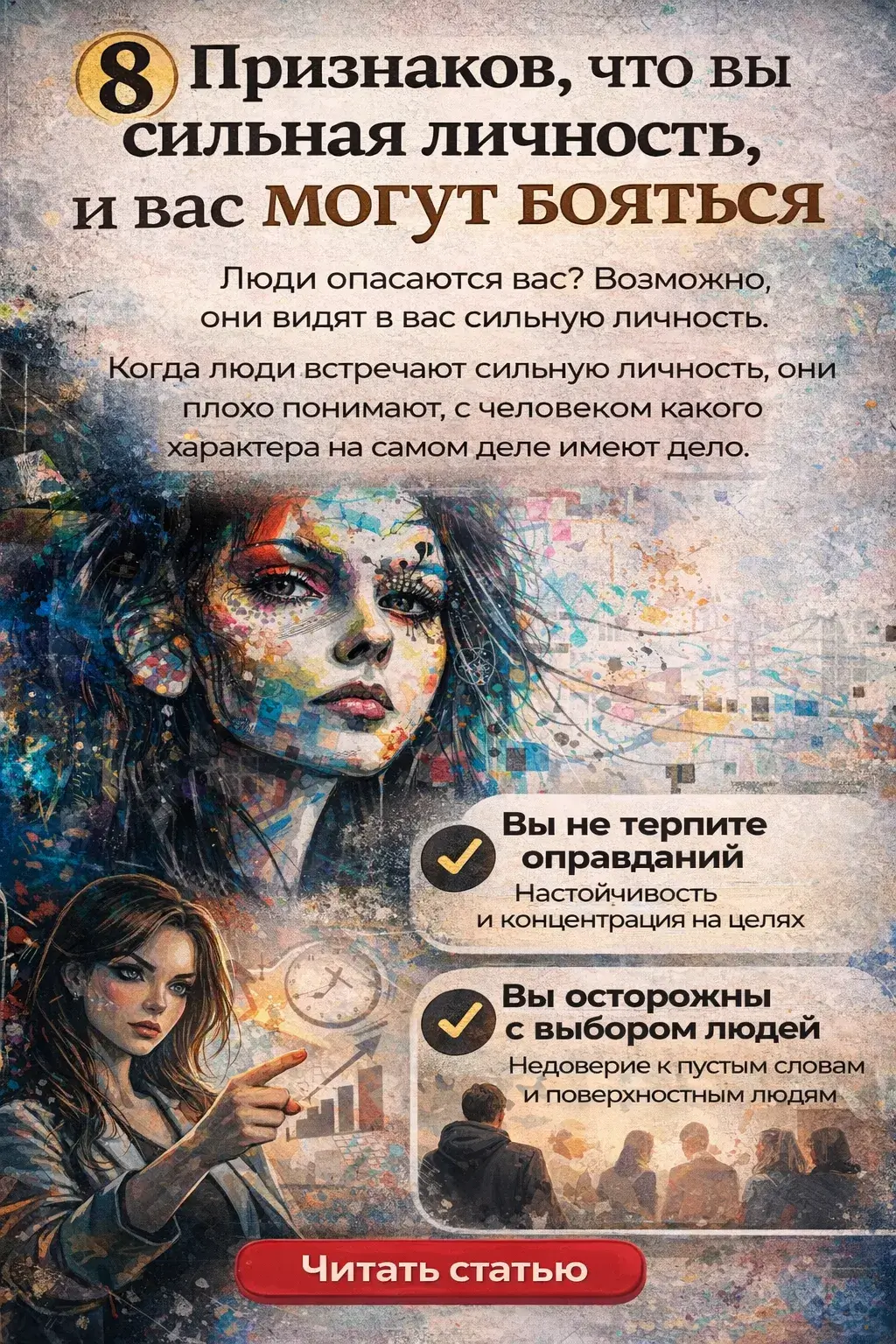 8 Признаков, что вы сильная личность, и вас могут бояться.Люди опасаются вас? Возможно, они видят в вас сильную личность.Когда люди встречают сильную личность, они плохо понимают, с человеком какого характера на самом деле имеют дело. Кто-то считает вас властным и надменным. Кто-то думает, что вы попросту грубиян. Но мы-то с вами знаем, что и те, и другие ошибаются.
