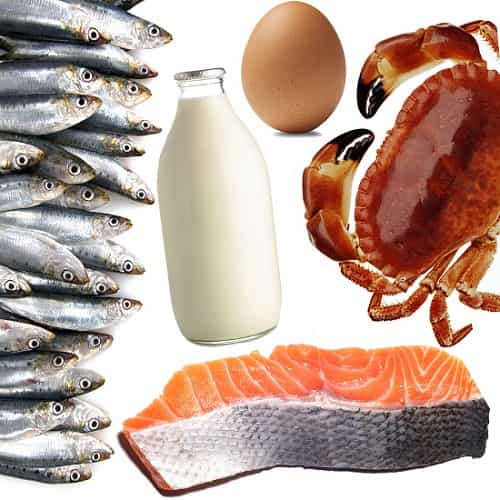 - Молокопродукты: коровье молоко, твёрдые и мягкие сыры, творог, сырковая масса и йогурт.