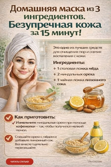 Домашняя маска из 3 ингредиентов.Безупречная кожа за 15 минут!Для того, чтобы кожа была в прекрасном состоянии и долго не старела, нужно соблюдать несколько простых правил. Одно из этих правил — своевременное и правильное очищение кожи. Особенно актуально это становится, если ваша проблема — это черные угри и прыщи.