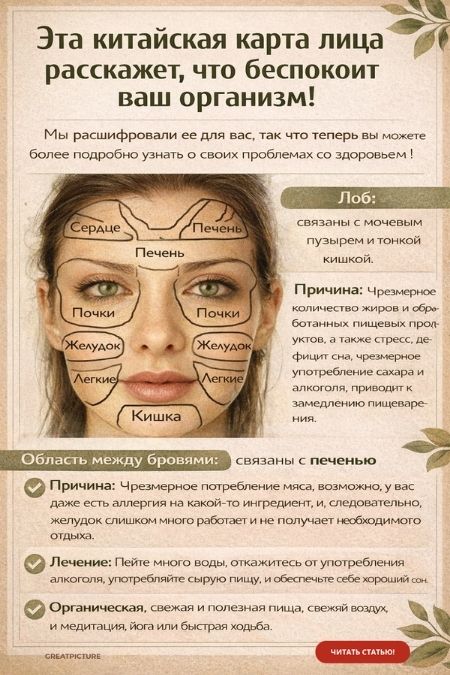 Эта китайская «карта лица» расскажет, что беспокоит ваш организм!Мы расшифровали для вас «карту лица», так что теперь вы можете более подробно узнать о своих проблемам со здоровьем!