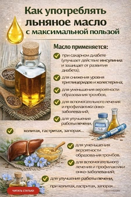 Не относитесь к льняному маслу, как к лекарству. Это скорее не лекарство, а обычный продукт питания, просто он не такой привычный для нашего рациона и очень полезный.