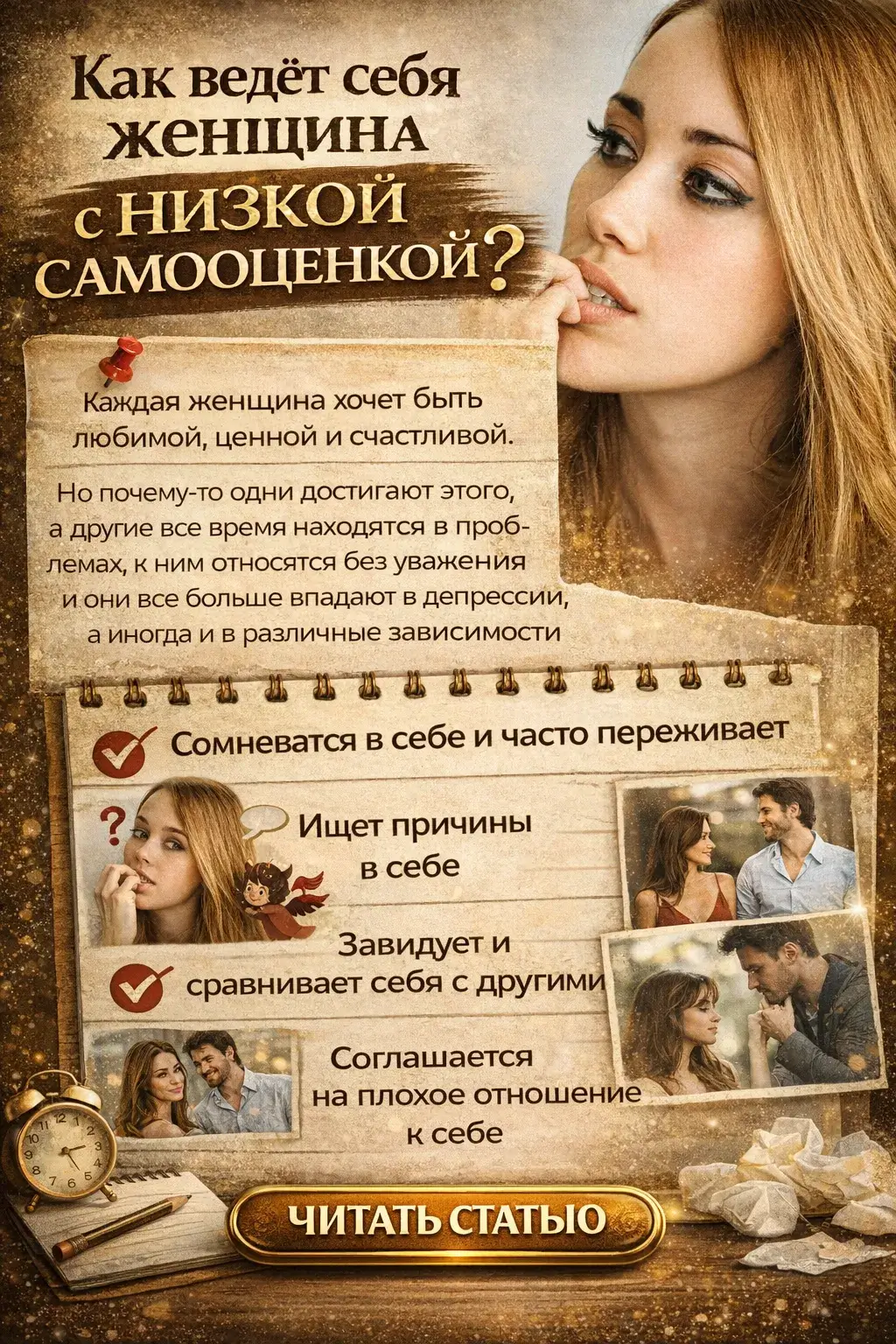 Теперь Вы знаете Как ведёт себя женщина с низкой самооценкой.