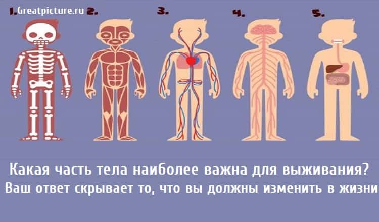 Какая часть тела наиболее важна для выживания? Ваш ответ скрывает то, что вы должны изменить в жизни. Какая часть тела, по вашему мнению, важнее всего для выживания? Выберите один из этих вариантов и узнайте, какой у вас тип личности и что вам нужно изменить в своей жизни.