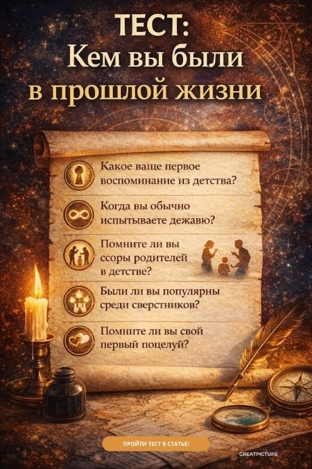 Тест: Кем вы были в прошлой жизни.Верите вы в реинкарнацию или нет, но тем не менее множество фактов говорит о том, что мы в этом мире живем не одну жизнь. Как иначе объяснить чувство дежавю или стойкое ощущение, что вы знаете совершенно незнакомого человека? Пройдите наш тест и узнайте, кем вы были в своей прошлой жизни.
