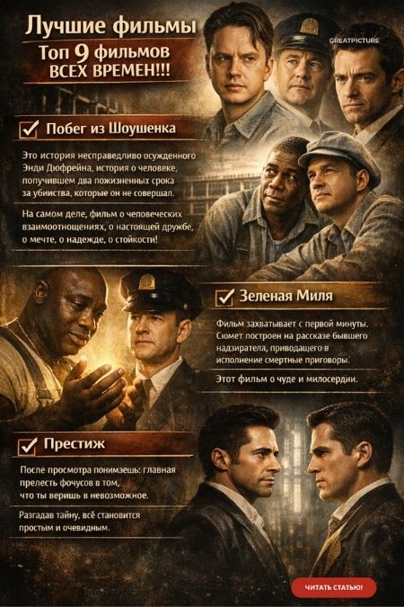 Лучшие фильмы. Топ 9 фильмов ВСЕХ ВРЕМЕН!!!Забирай себе на стену, чтобы не потерять! 😉