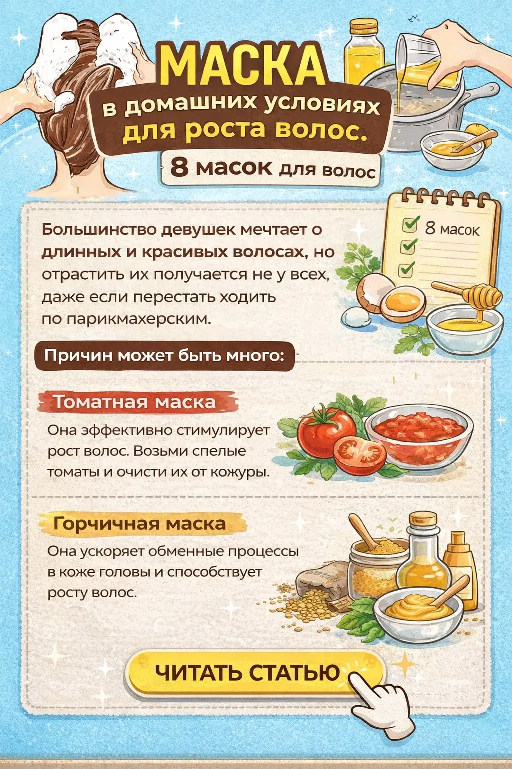 Мы подготовили для тебя 8 масок, которые помогут устранить эти проблемы. Они обеспечат твоим волосам правильный уход и будут их питать полезными веществами.Маска в домашних условиях для роста волос: