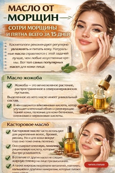 Масло от морщин.Сотри морщины и пятна всего за 15 дней.Время беспощадно даже к таким прекрасным существам, как женщины. Года рисуют на их красивых лицах морщинки, а иногда и пигментные пятна.Эти неприятности появляются тем раньше, чем суше кожа у женщины.