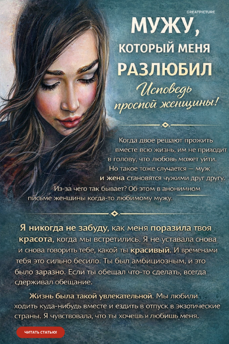 Мужу который меня разлюбил. Исповедь простой женщины!