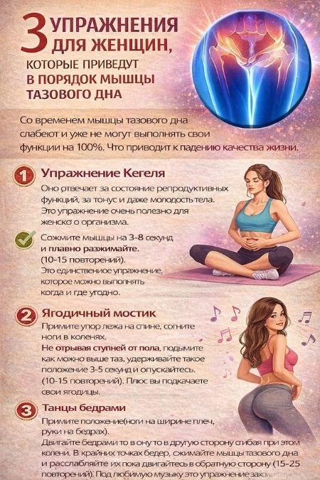 3 упражнения для женщин, которые приведут в порядок мышцы тазового дна.