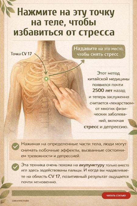 Нажмите на эту точку на теле, чтобы избавиться от стресса. Результат вы почувствуете сразу! Этот метод китайской медицины появился почти 2500 лет назад и теперь заслуженно считается «лекарством» от многих физических и психических заболеваний, включая стресс и депрессию.