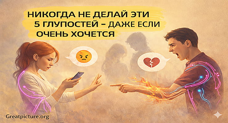 Никогда не делай эти 5 глупостей – даже если очень хочется (и чем заменить их по-взрослому). Есть поступки, которые кажутся “логичными” в момент боли: хочется оправдать человека, вернуться туда, где уже ломало, написать первой, “уколоть в ответ”, унизиться ради внимания. Но почти всегда эти решения делают хуже – потому что они не про любовь и не про связь. Они про тревогу, зависимость от реакции и попытку заглушить внутреннюю пустоту.
