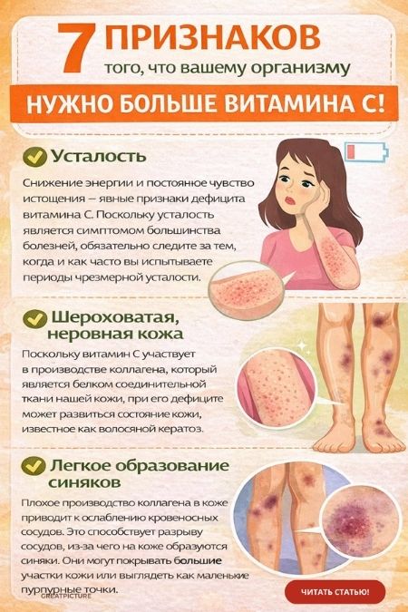 Витамин С является одним из наиболее важных элементов ежедневного рациона. Он способствует правильному функционированию системы кровообращения, росту клеток, а также развитию и поддержанию нашего организма. Дефицит витамина C – серьезная проблема, и ее следует лечить с помощью натуральных продуктов или добавок, чтобы увеличить его потребление. Эти семь признаков указывают на то, что вашему организму нужно больше витамина С! Вовремя обратите внимание на свое здоровье и примите соответствующие меры.