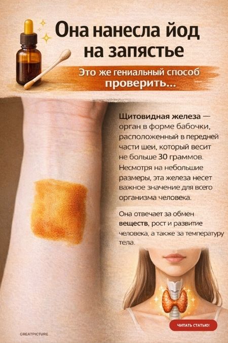 Она нанесла йод на запястье. Это же гениальный способ проверить свое здоровье!