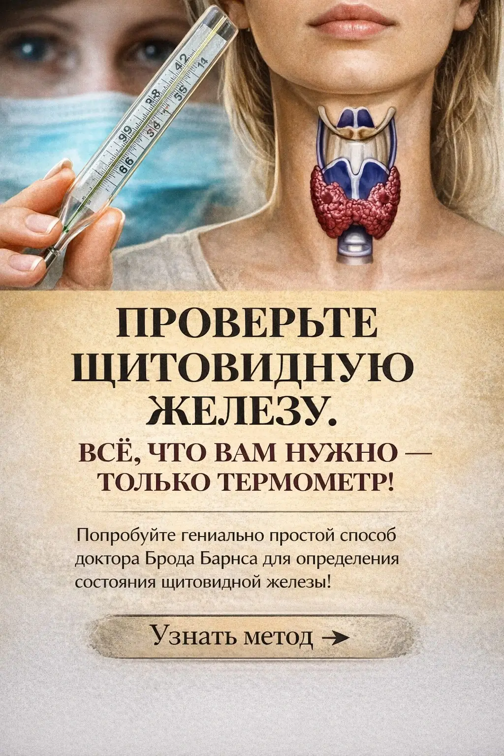 Проверьте щитовидную железу. Всё, что вам нужно — только термометр!Попробуйте гениально простой способ доктора Брода Барнса для определения состояния щитовидной железы!