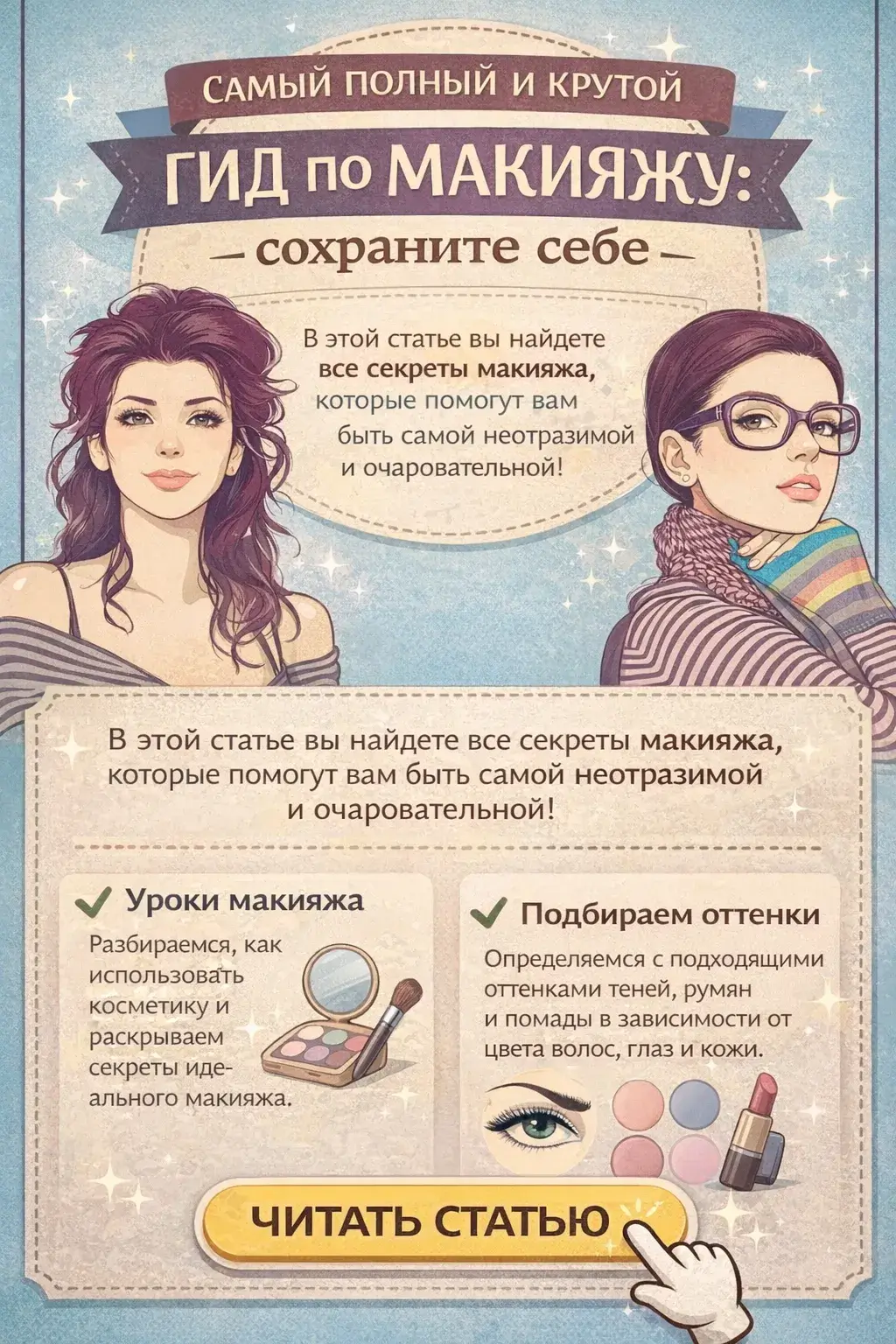 Самый полный и крутой гид по макияжу: сохраните себе.В этой статье вы найдете все секреты макияжа, которые помогут вам быть самой неотразимой и очаровательной!