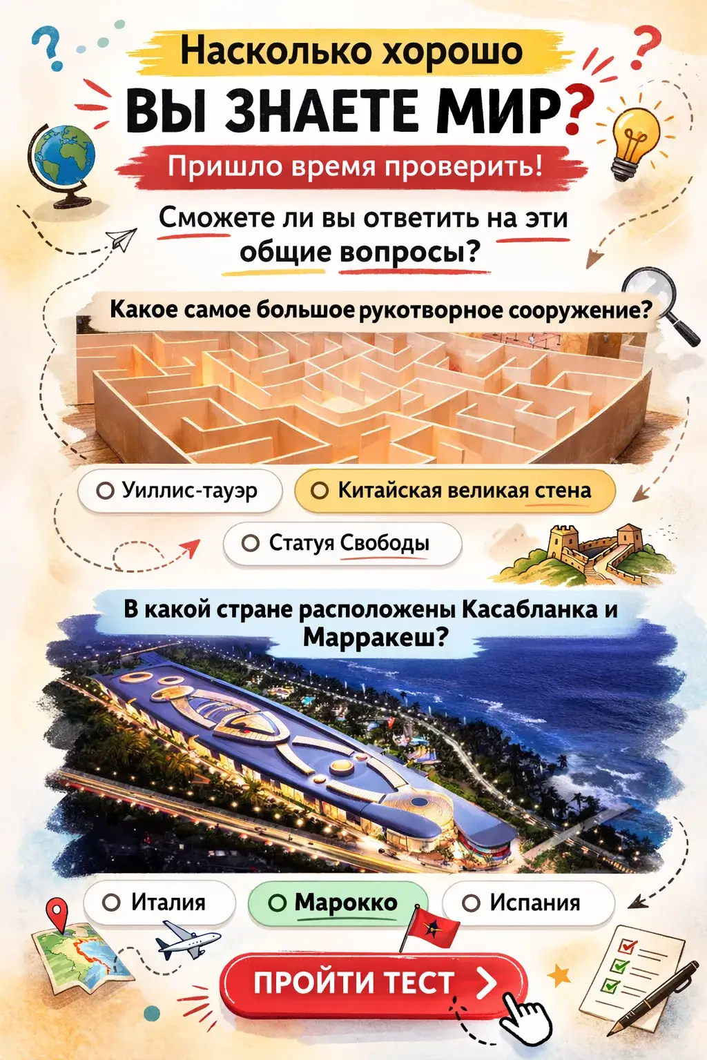 Сможете ли вы пройти реально пустяковый тест на эрудицию?Насколько хорошо вы знаете мир? Пришло время проверить, сможете ли вы ответить на эти общие вопросы.