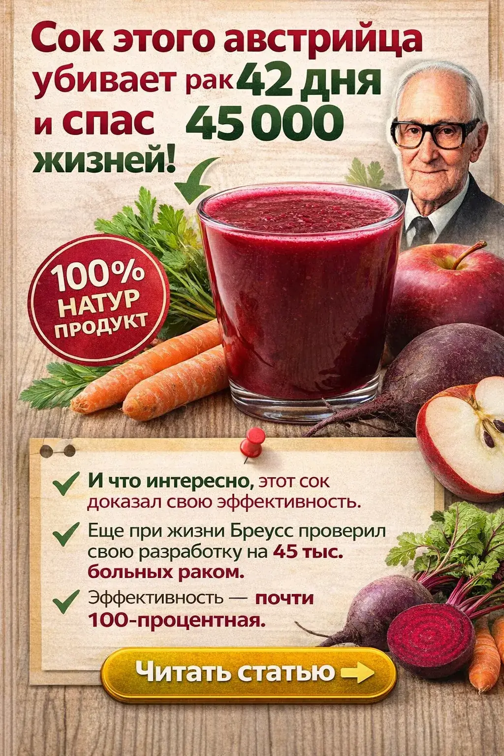 И что интересно, этот сок доказал свою эффективность. Еще при жизни Бреусс проверил свою разработку на 45 тыс. больных раком. Эффективность — почти 100-процентная.