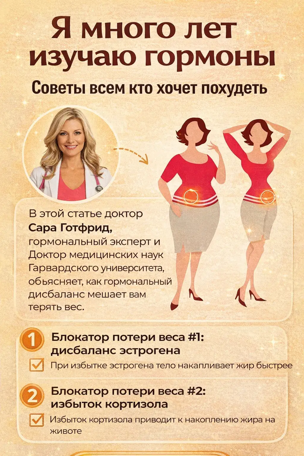 Я много лет изучаю гормоны.Советы всем кто хочет похудеть.Вот почему у вас не получается.В этой статье доктор Сара Готфрид, гормональный эксперт и Доктор медицинских наук Гарвардского университета, объясняет, как гормональный дисбаланс мешает вам терять вес.