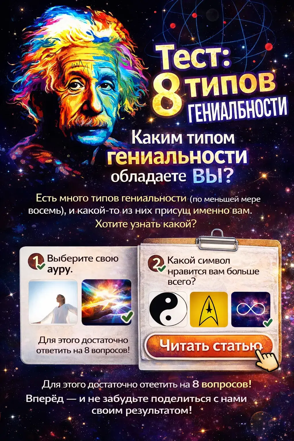 Тест: Есть 8 типов гениальности.Каким типом гениальности обладаете ВЫ.Есть много типов гениальности (по меньшей мере восемь), и какой-то из них присущ именно вам. Хотите узнать какой?