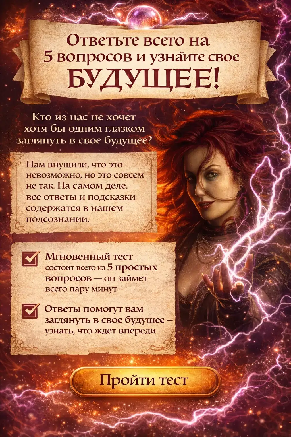 И этот тест поможет вам раскрыть те секреты, которое оно хранит, и узнать свое будущее. Главное – отвечайте быстро и не задумываясь.Тест: Ответьте всего на 5 вопросов и узнайте свое будущее: