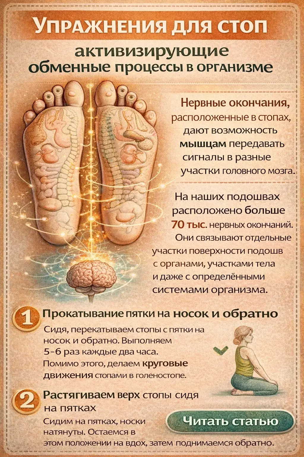 Упражнения для стоп активизирующие обменные процессы в ОРГАНИЗМЕ.