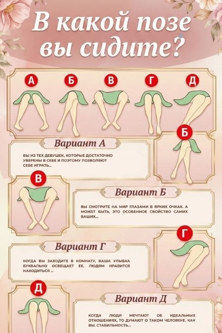 В какой позе вы сидите,такой у вас и характер!Какая из поз для вас удобнее всего?