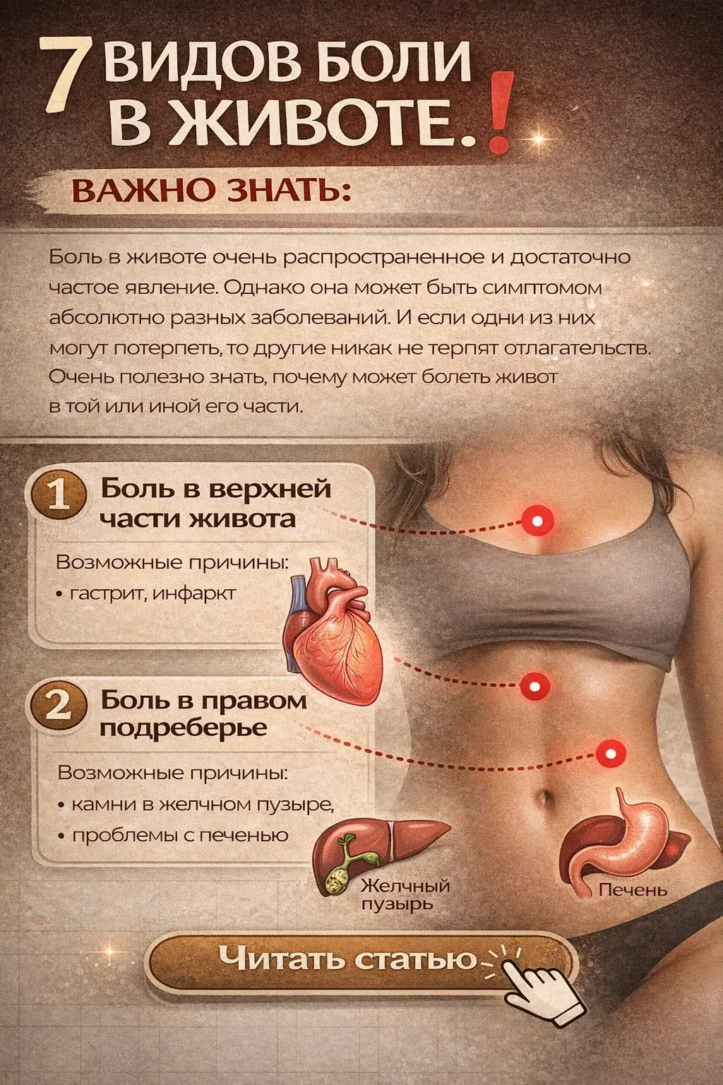 Этим ты можешь помочь не только себе, но и кому-нибудь из близких. Именно для этого мы подготовили для тебя материал о 7 видах боли в животе. Gretpicture ! Желаем здоровья тебе и твоим близким!