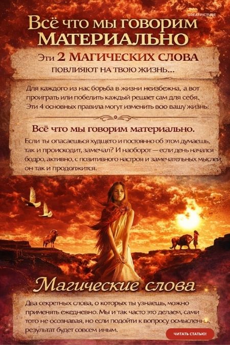 Всё что мы говорим материально. Эти 2 магических слова повлияют на твою жизнь…Проверь. Ты увидишь, как всё изменится! Слова имеют силу! Убеждения, которые руководят тобой, влияют на всё происходящее в жизни.