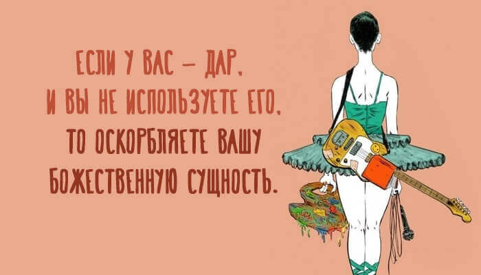 Если у вас — дар, и вы не используете его, то оскорбляете вашу Божественную сущность. Чтобы с должной почтительностью относиться к своим способностям, вы должны радоваться дарам и разделять их с другими.