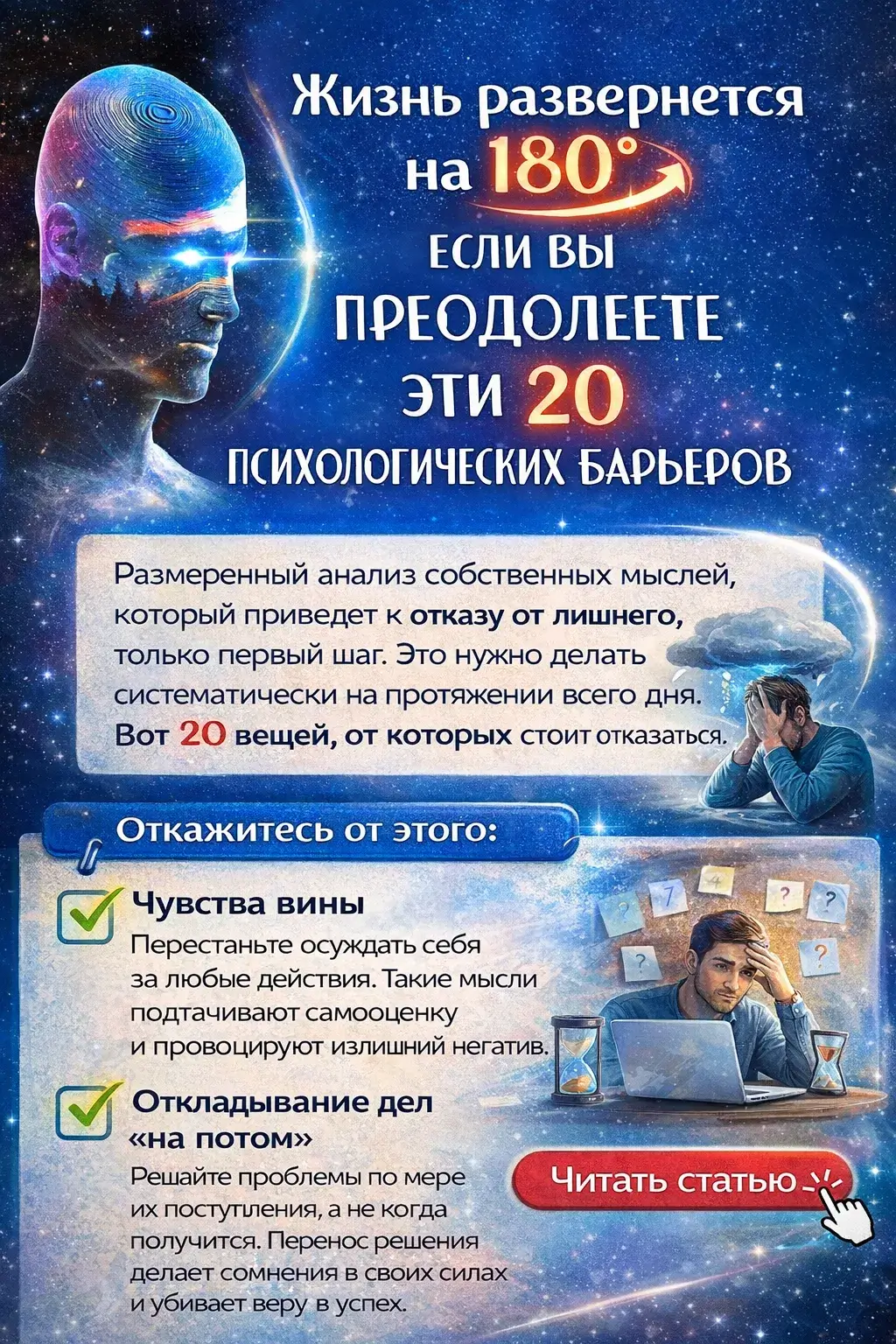 Теперь Вы знаете что Жизнь развернется на 180, если вы преодолеете эти 20 психологических барьеров.